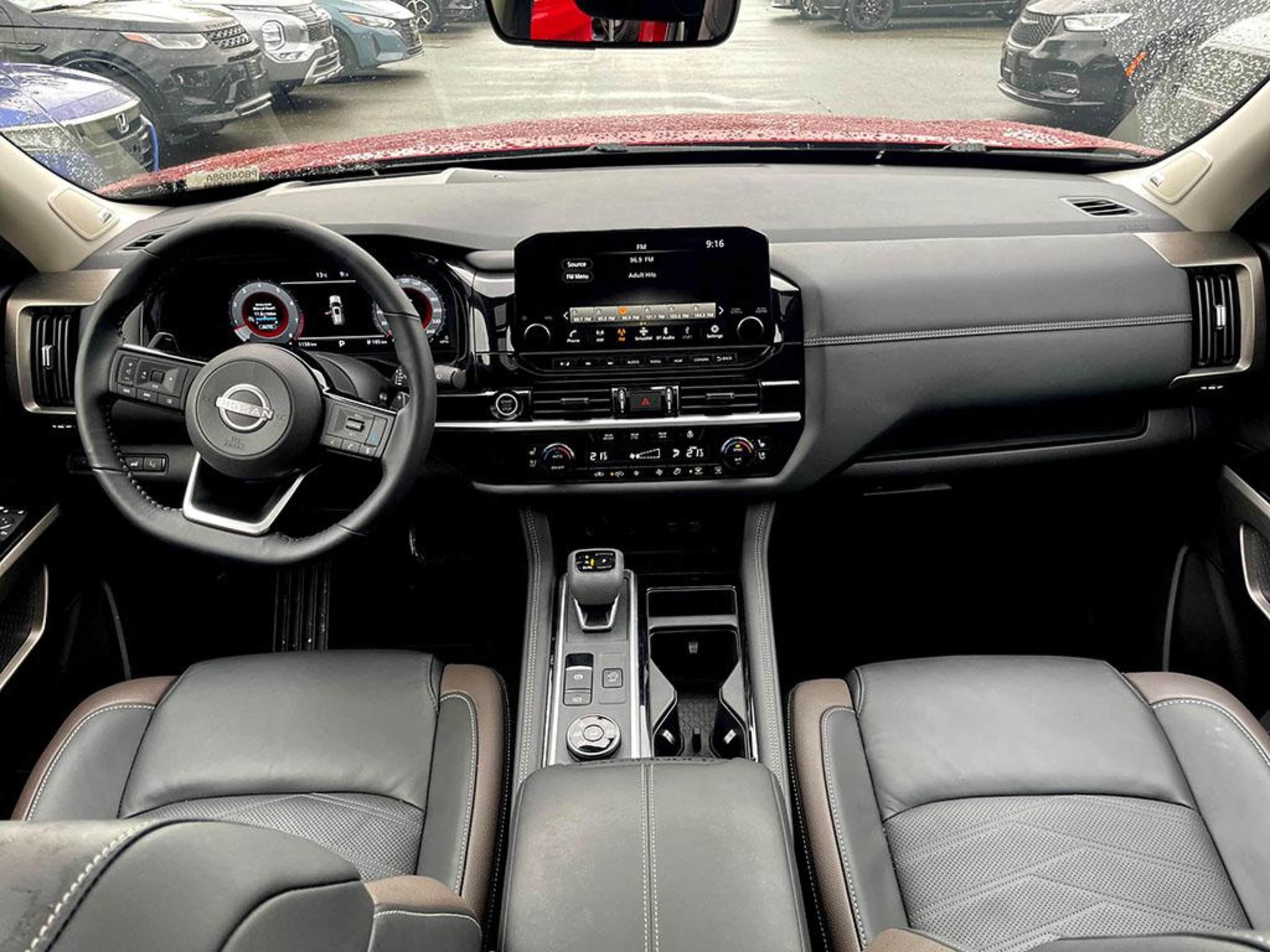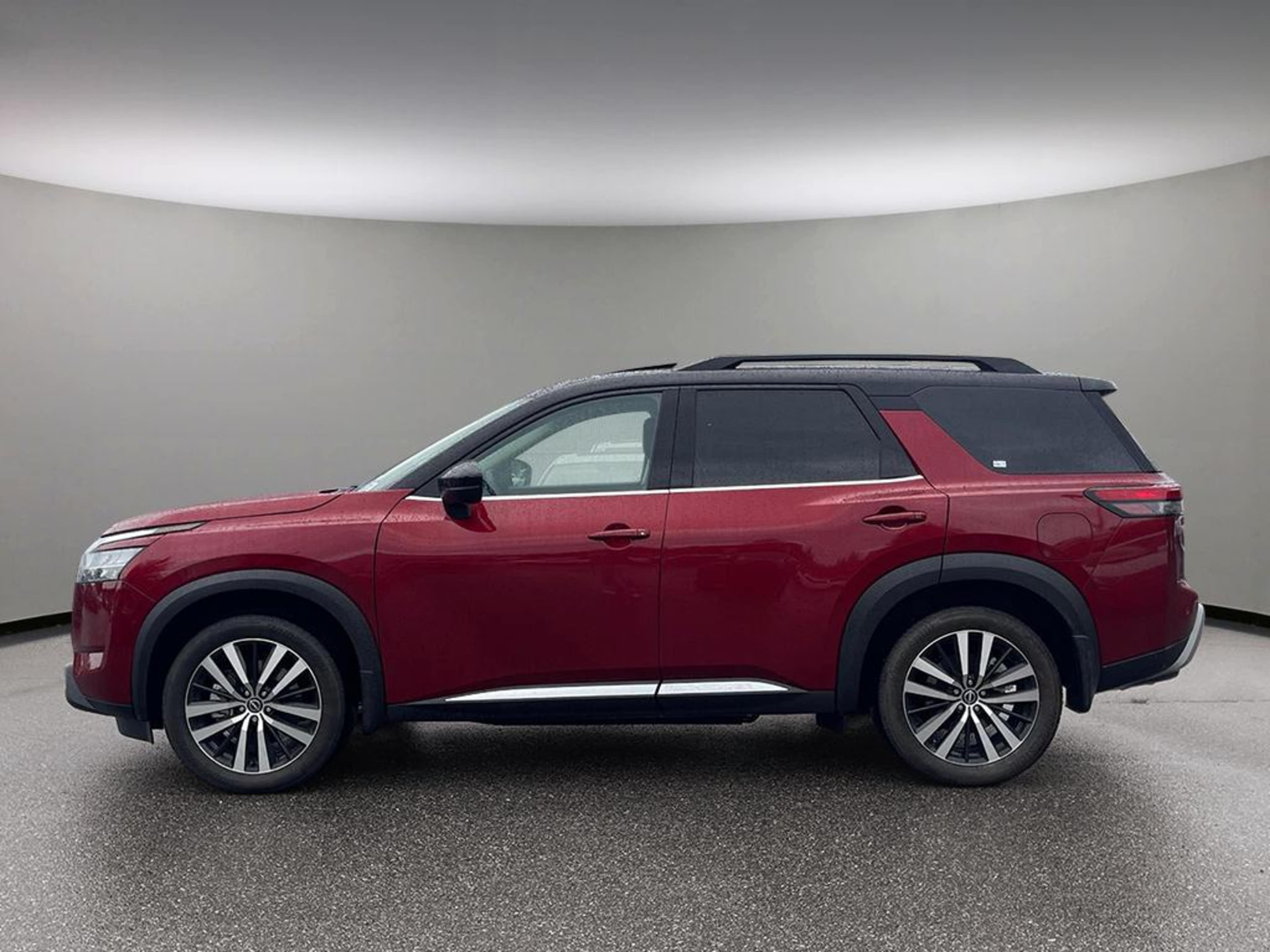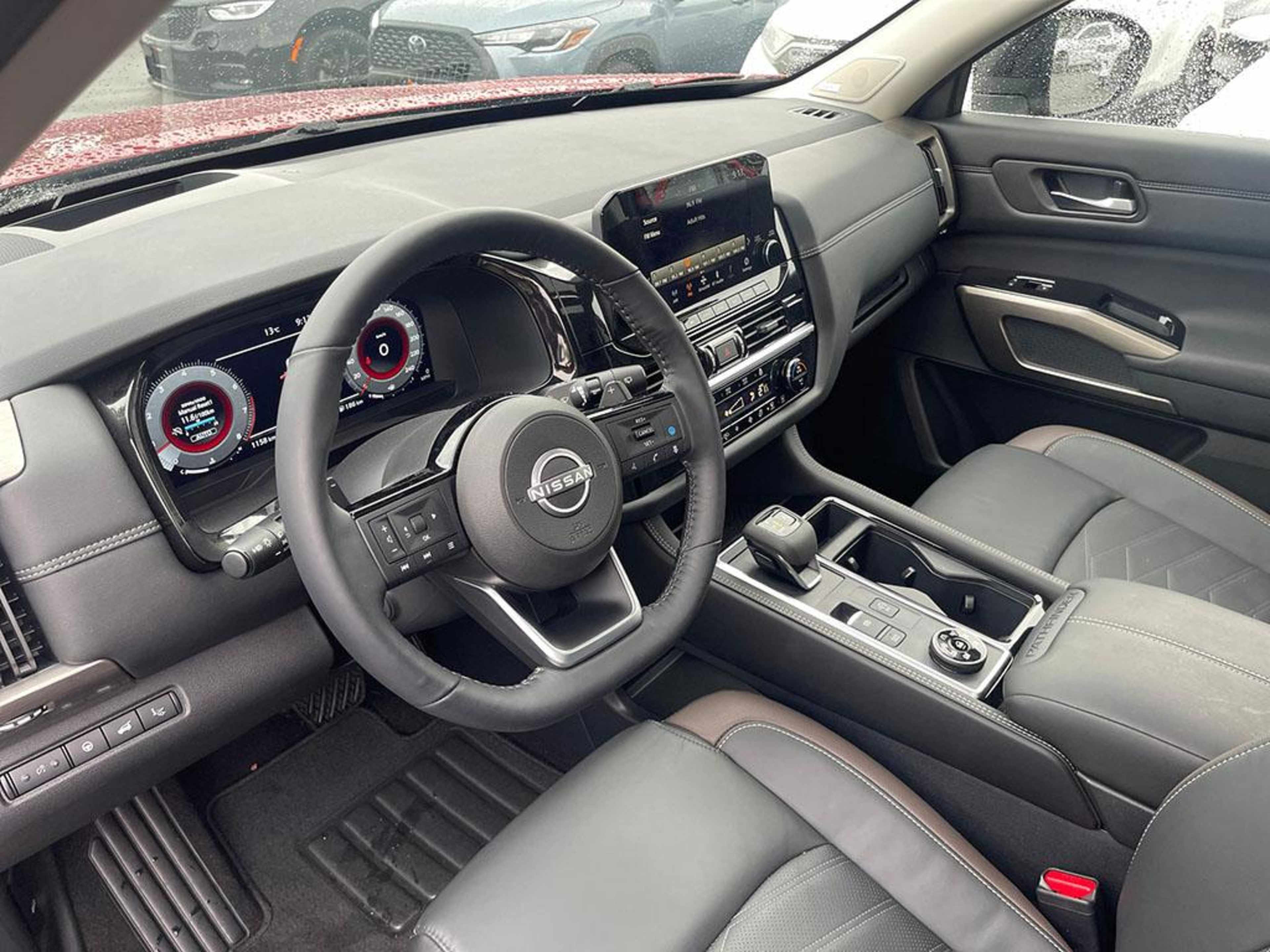 This 2024 Pathfinder Platinum 4WD features LEATHER/HEATED/VENTED FRONT SEATS, LEATHER/HEATED STEERING WHEEL, NAVIGATION SYSTEM, PANORAMIC POWER SUNROOF, BLIND SPOT/REAR CROSS PATH DETECTION, BACK-UP CAMERA, REAR PARK ASSIST, POWER DRIVER SEAT, keyless entry/ignition, auto dimming rear view mirror, Bluetooth, a leather wrapped steering wheel with mounted cruise and audio controls, power tilt/telescopic steering column, 2nd row captain chairs, 3rd row 60/40 split fold-flat reclining bench seat, tri-zone a/c, roof rack rails, LED daytime running lamps, fog lamps, dual power heated exterior mirrors with LED turn signal indicators, Nissan intelligent Key, Nissan Connect Mobile Apps, rear tinted windows, alloy wheels and even more great features!